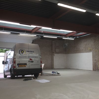 Herders elektrotechniek heeft deze bedrijfsruimte in Enkhuizen geheel voorzien van nieuwe elektra. Er is een kabelgoot systeem opgehangen met daaronder LED verlichting armaturen. Zeer milieuvriendelijk en bovendien kostenbesparend. In de bedrijfsruimte zijn diverse contactdozen geplaatst. Aan de buiten gevel zijn LED verlichting armaturen geplaatst met schemerschakelaar. Deze schakelaar zorgt ervoor dat de verlichting automatisch aan en uitschakelt als het donker en licht wordt. Wederom milieuvriendelijk, kostenbesparend en gemakkelijk bovendien. De groepenkast is vernieuwd en voldoet weer aan de hedendaagse eisen. Het geheel kan na deze professionele opknapbeurt weer jaren mee.